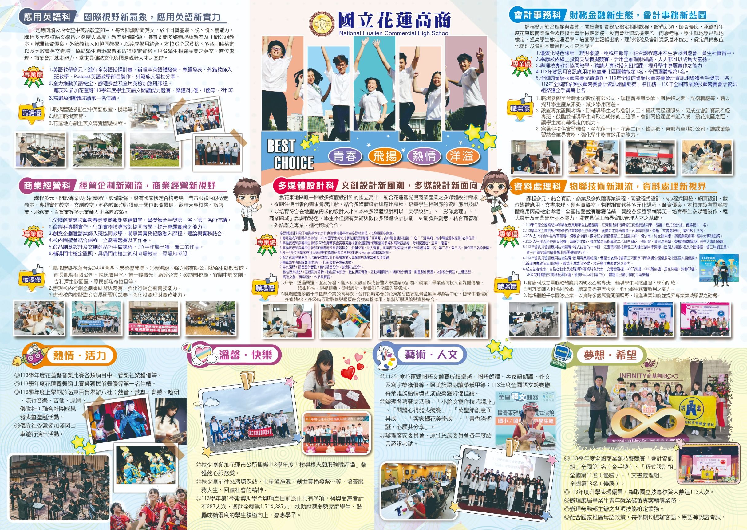 ![]() 114花蓮高商招生DM正面 880K 115/3/2 | ![]() 114花蓮高商招生DM背面 1088K 115/3/2 | ![]() 114花蓮高商簡介 11469K 115/3/2 | ![]() 115花蓮高商招生科別(新設科) 216K 115/3/2 |