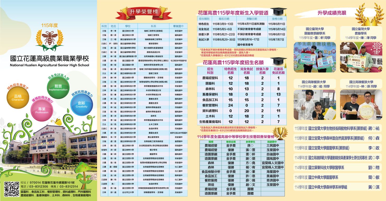 目前所在目錄:根目錄 / 04生涯教育 / 04花蓮縣高中職五專各校簡介資料 / 花蓮高農共 3 個檔案 |